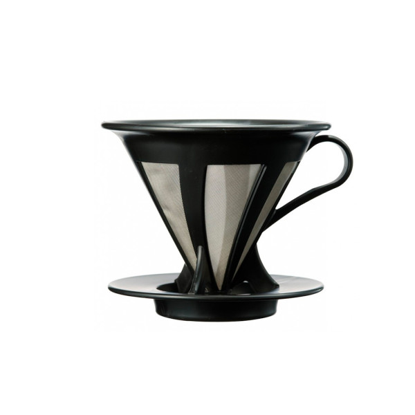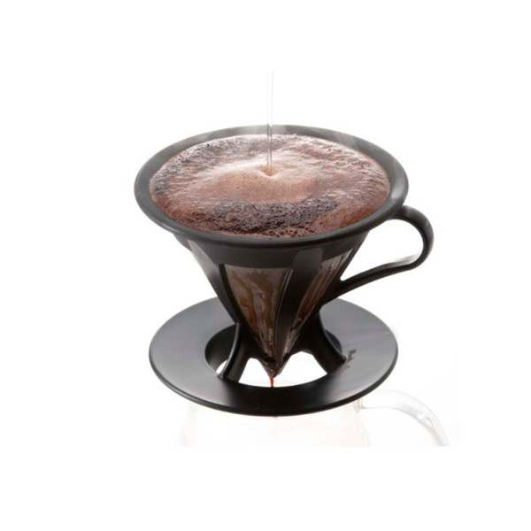 Кавоварка пуровер Hario V60 пластикова з металічним фільтром, чорна CFOD-02B